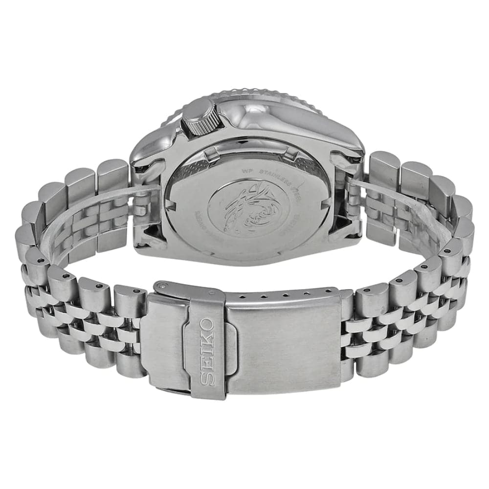 The Seiko Men's Diver's Automatic watch is sleek, looks good and invincible to water unless the depth crosses the 200 meters barrier. Measuring 40mm across, this is all stainless steel construction with a black dial and a unidirectional bezel to keep check on the elapsed hours. And being a diver watch, it goes without saying that the hands and the marks are prominent enough to show even in the abysmal, oceanic depths.