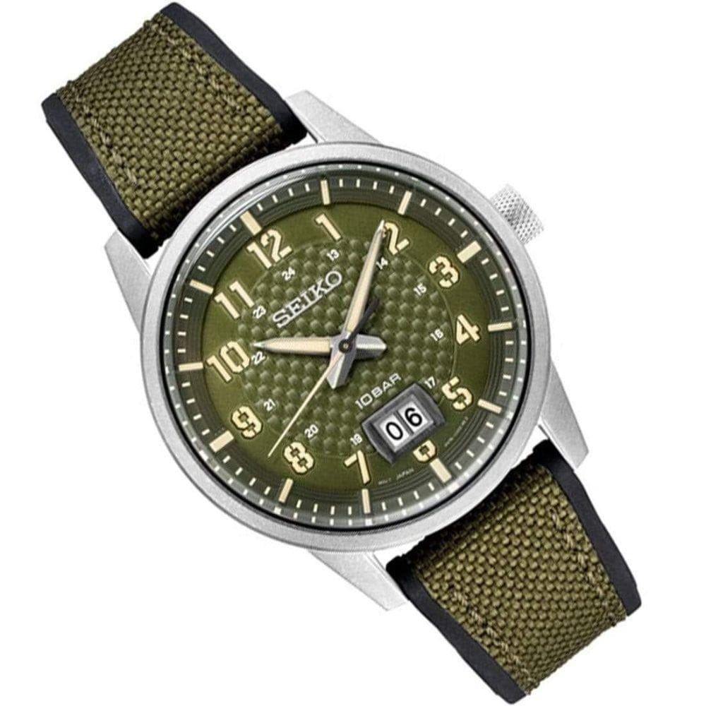 SEIKO GENERAL SUR323P1P NYLON GREEN STRAP MEN'S WATCH