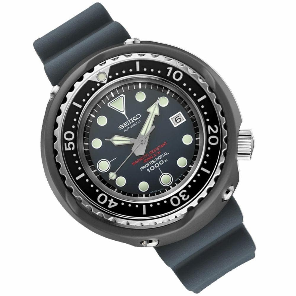 The 1975 professional diver's 600m re-creation SLA041 is powered by 8L35 automatic movement with ±15 to -10 seconds per day accuracy and has 50 hours power reserve. This timepiece features a 52.4mm dial with date display, sapphire crystal, and 1000m water resistance / 3300ft for saturation diving.