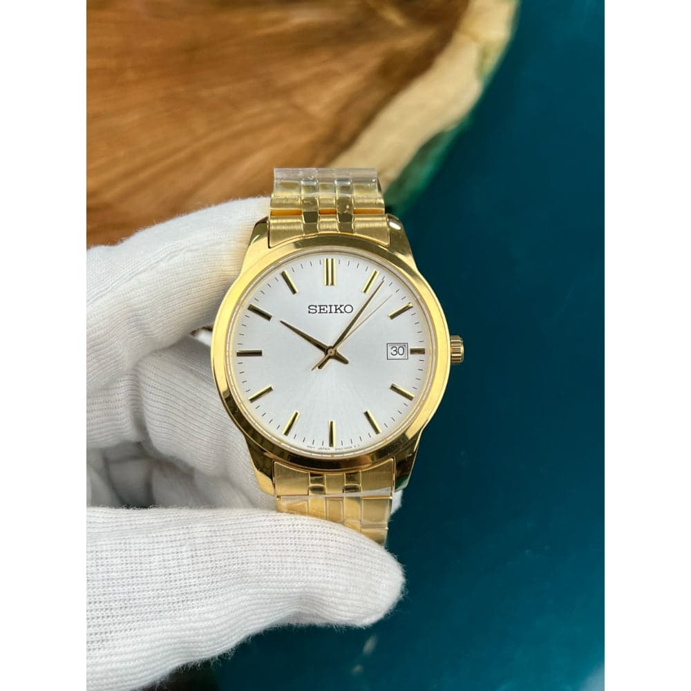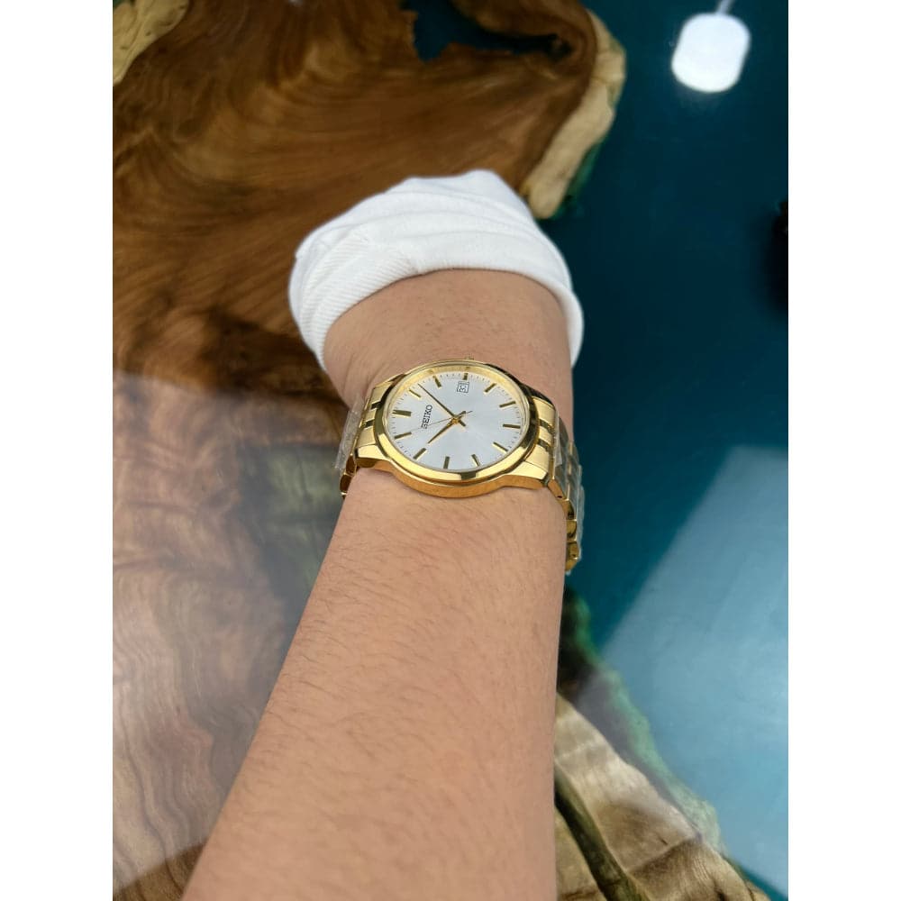 Seiko White Dial Gold Stainless Steel Strap Men Watch SUR404P1