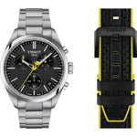 The PR100's versatility is enhanced by a three-row metal bracelet with a butterfly buckle. A secondary bi-material black strap uses the texture of bicycle handlebar grips and features colors corresponding to the ones of the Tour de France.